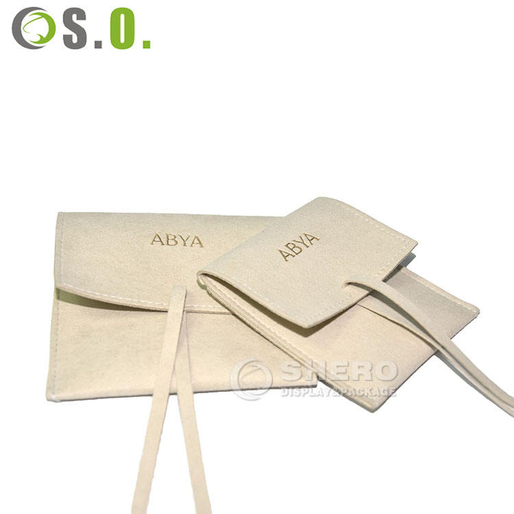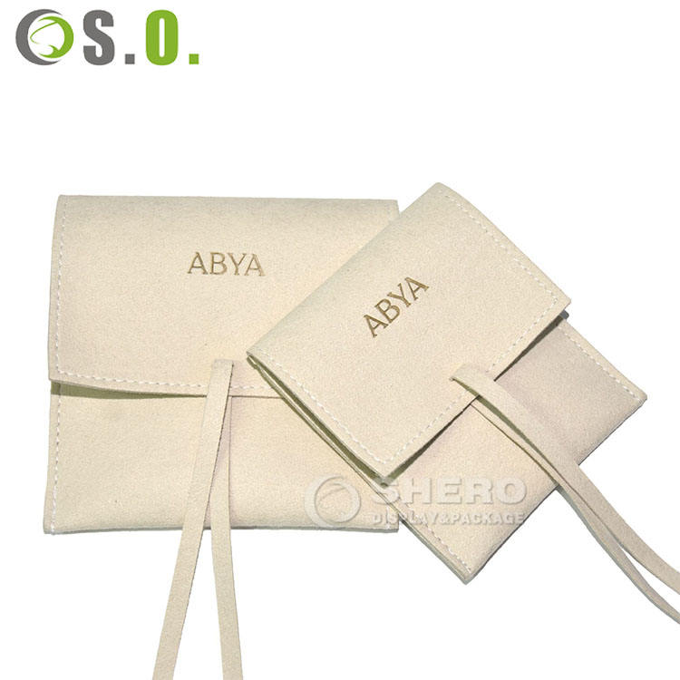 Logo personnalisé personnalisé rabat velours daim microfibre emballage bijoux sacs pochette avec insert