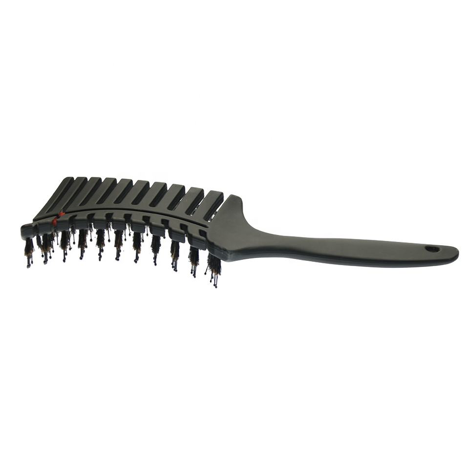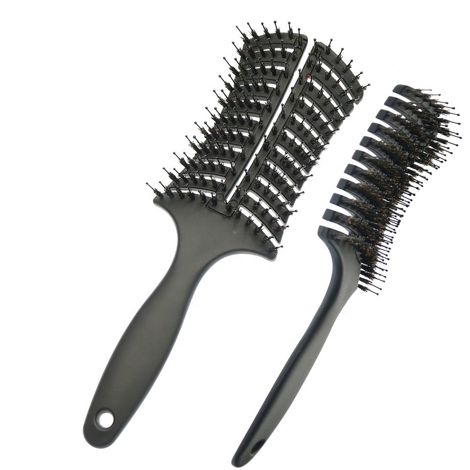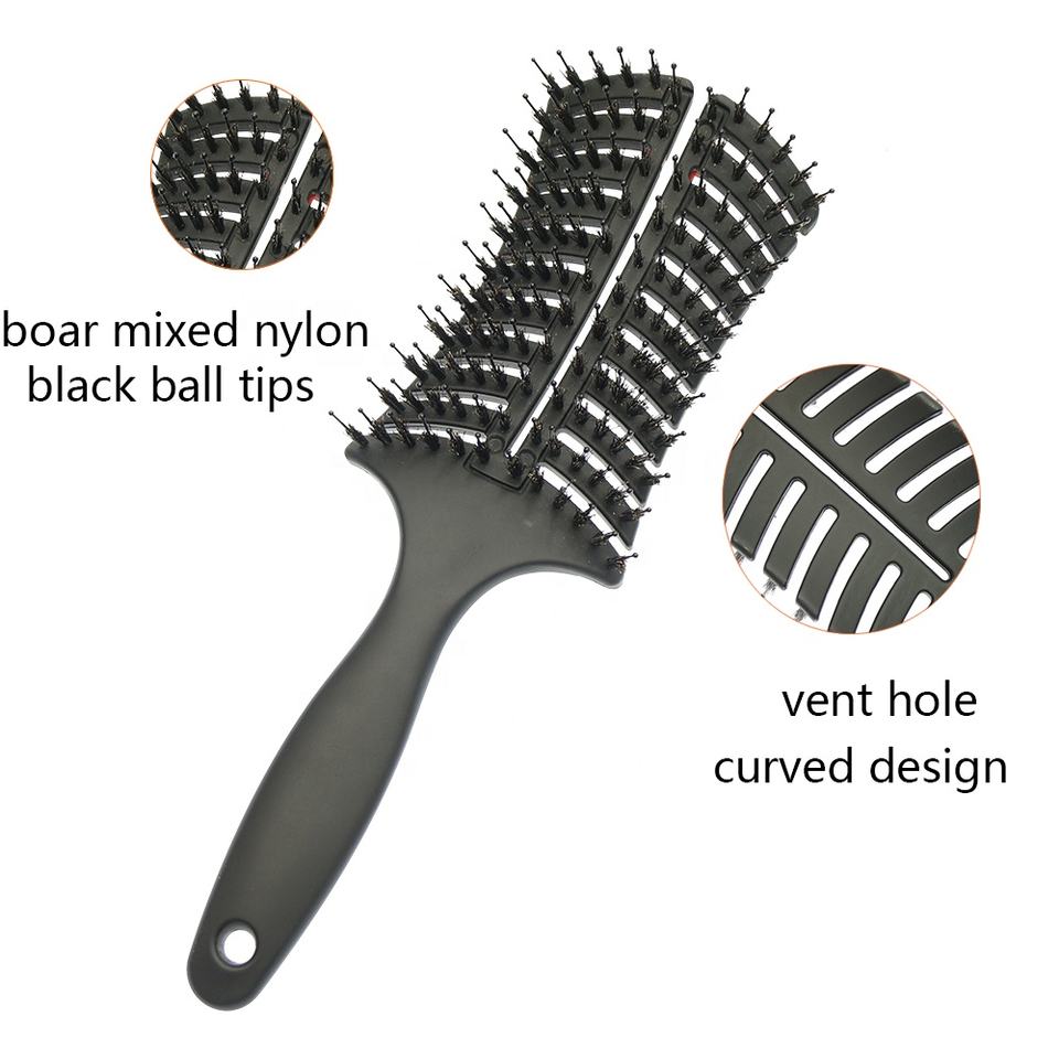 Brosse à cheveux en nylon mélangé pur sanglier avec manche en plastique personnalisé, design incurvé, ventilation en kératine