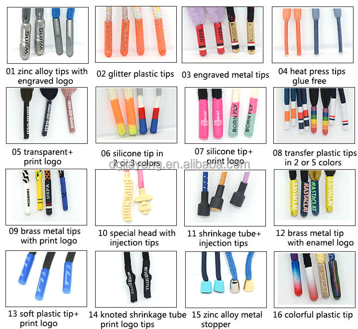 Logo personnalisé en plastique caoutchouc Aglet conseils cordon de serrage Silicone dentelle conseils Dip fin noué fin rembourré cordon de tirage