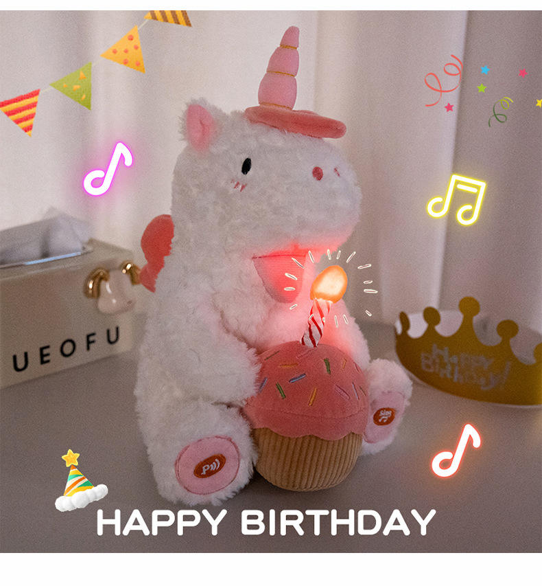 Product Name:Custom logo plush unicorn with birthday cake