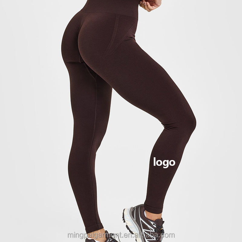 Leggings de sport sans couture à taille haute en polyamide avec logo personnalisé pour filles, leggings évasés pour le yoga, leggings pour femmes