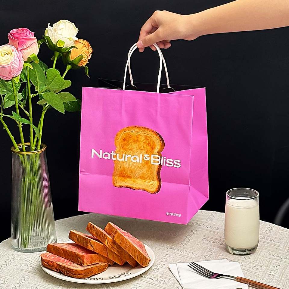 Sacs en papier écologiques imprimés avec logo personnalisé, design gratuit, adaptés aux plats à emporter de boulangerie, à la livraison de nourriture et à l'emballage de produits de boulangerie
