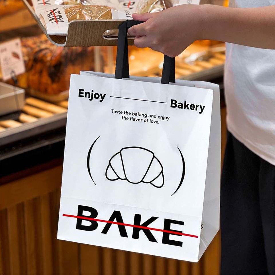 Sacs en papier kraft personnalisés avec logo imprimé et poignées, pour la livraison et la vente à emporter de produits de boulangerie, adaptés aux sacs de boulangerie pour le shopping