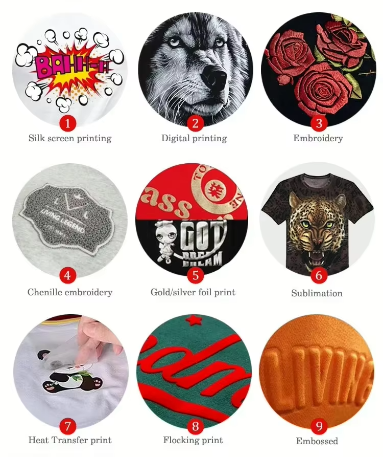Silk Screen Printing, Digital Printing, Puff Printing, silicone printing, Heat-Transfer Printing