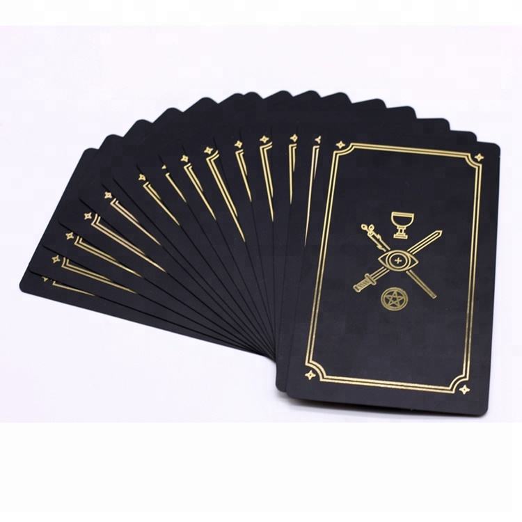 Jeu de cartes de poker en PVC personnalisé avec logo, imperméable, doré, jeu de tarot pour jeux de famille, noir