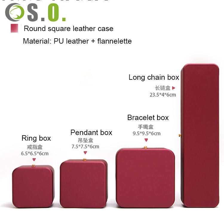 Custom logo Red Green Pu Leather Jewelry Box Packaging for Ring Pendant Bracelet Bangle Necklace Earrings Jewellery Boxes