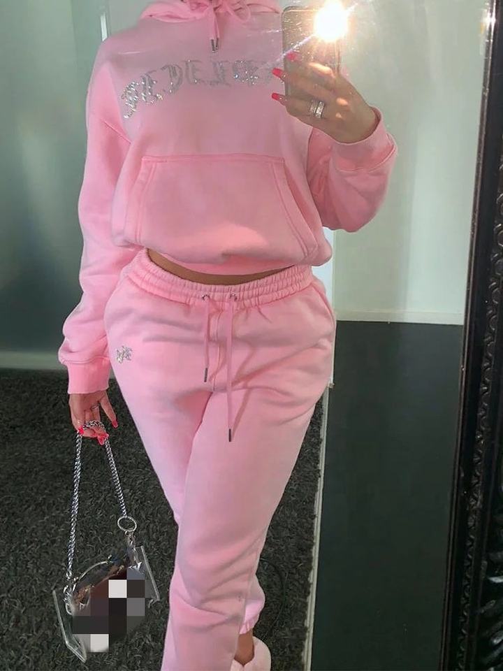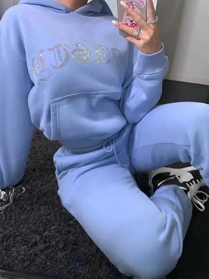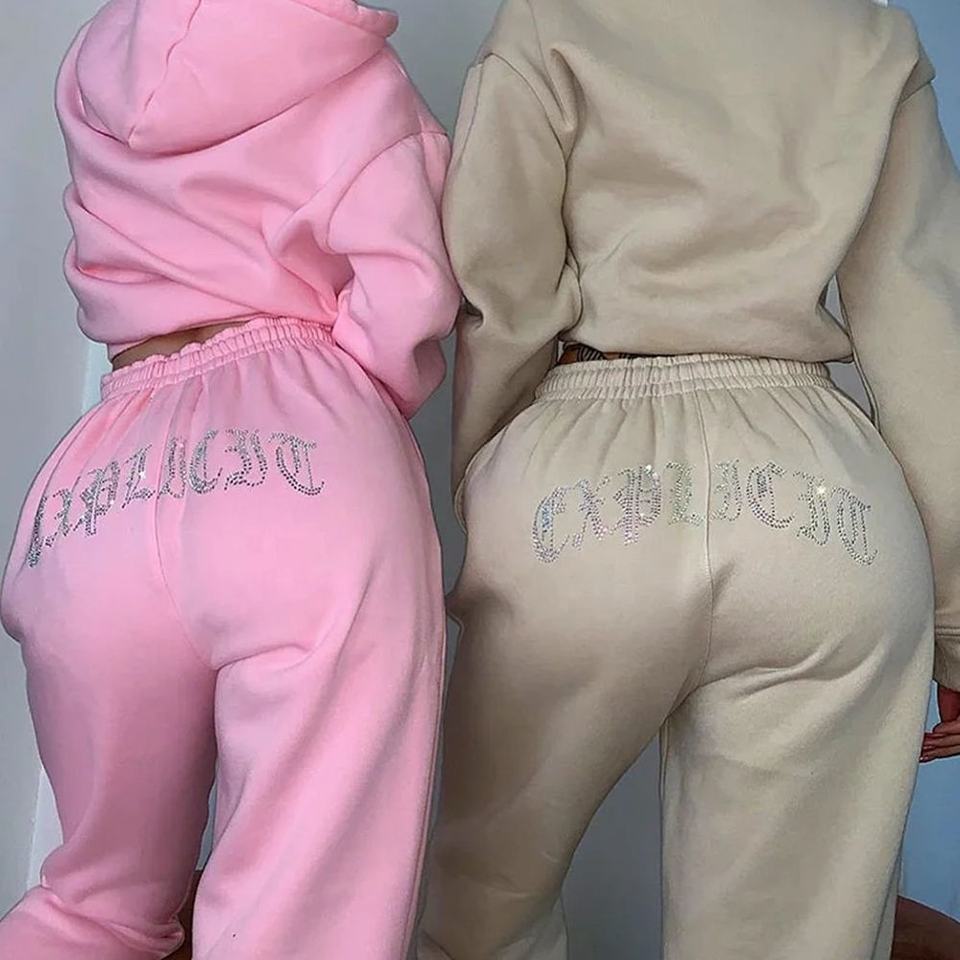 Ensemble sweat-shirt et jogging surdimensionné à logo personnalisé en strass pour femmes, ensemble sweat-shirt et pantalon de survêtement en coton de haute qualité pour femmes