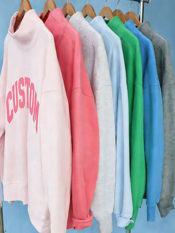 Sweat-shirt surdimensionné en coton côtelé avec logo personnalisé imprimé à l'écran, haut décontracté à col montant pour femme