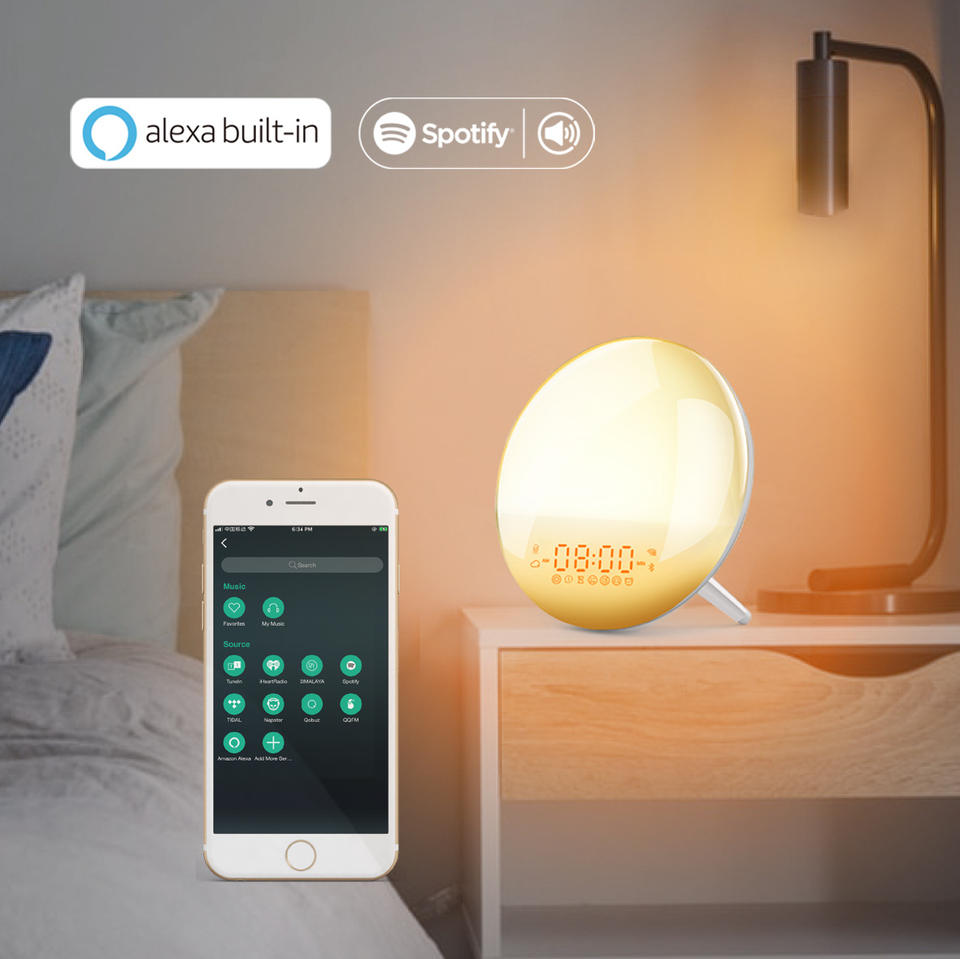 Logo personnalisé simulation lever du soleil coucher de soleil réveil atmosphère colorée veilleuse radio réveil traitement OEM