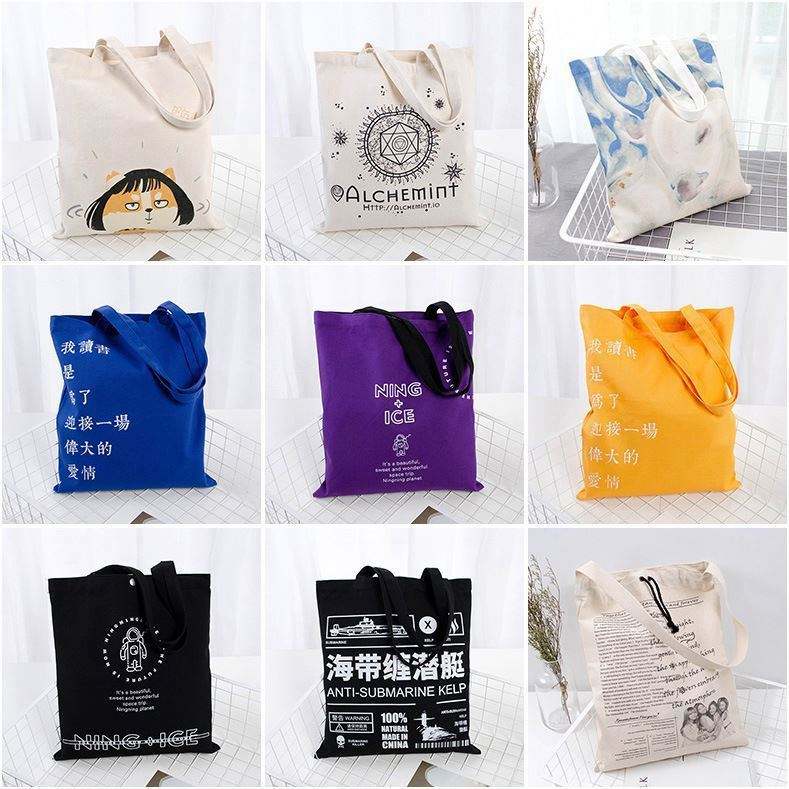 Sac fourre-tout en toile de coton bio réutilisable, imprimé avec logo personnalisé, écologique, épais, 100% coton, pour les courses