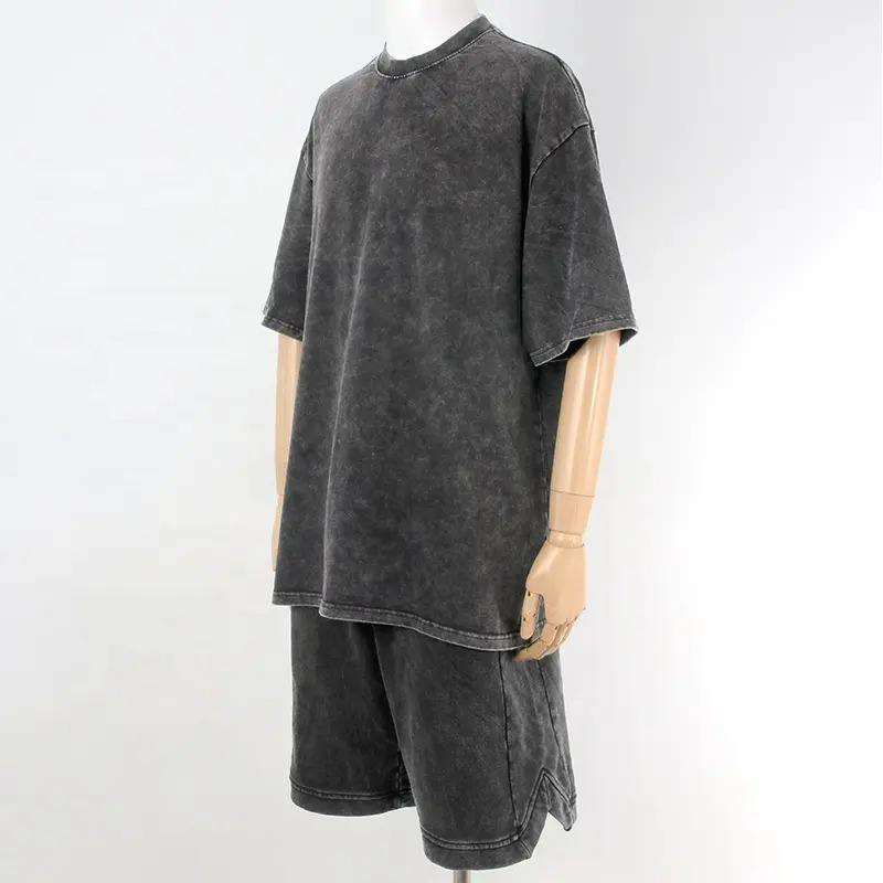 Ensemble 2 pièces T-shirts à manches courtes délavés à l'acide et shorts, style streetwear, avec logo personnalisé, pour hommes, tenues de sport décontractées, vêtements masculins