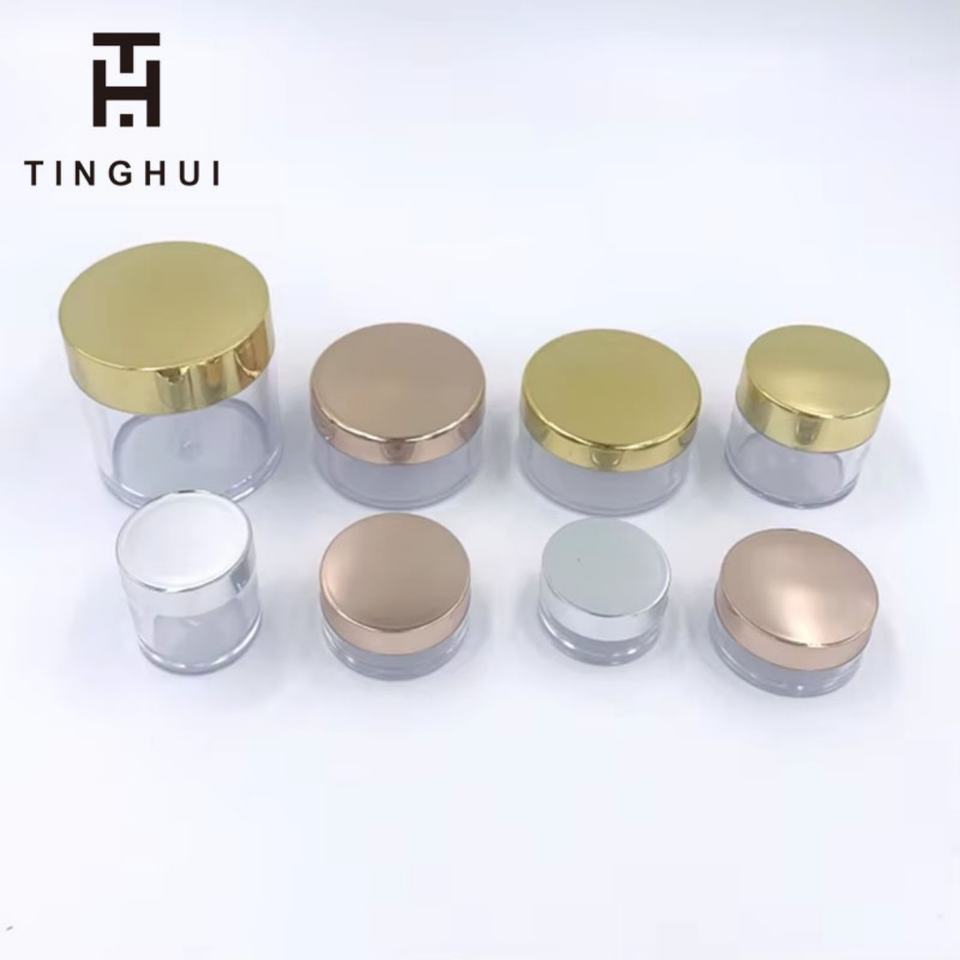 Pot cosmétique rond en plastique transparent avec logo personnalisé, pour crème ou gommage, 1oz, 2oz, 8oz, 16oz, 4oz, avec couvercle doré rose