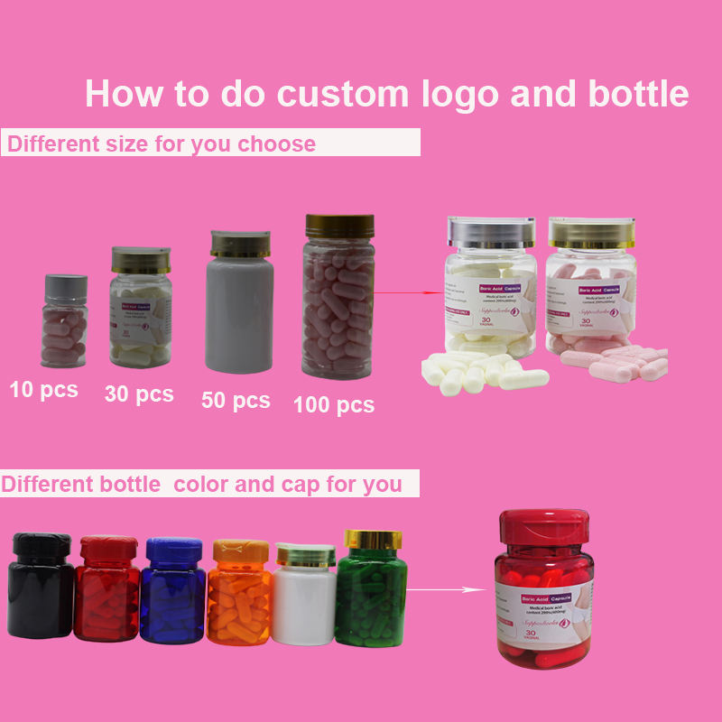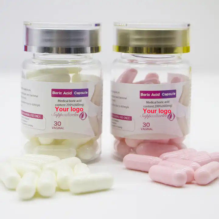 Logo personnalisé Vente en gros Capsules de poudre d'acides boriques Resserrer les sucettes Yoni Suppositoires d'acide borique organique 600mg Pilules vaginales