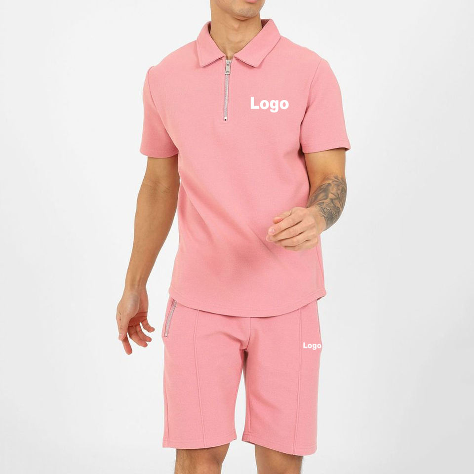 Ensemble de survêtements d'été deux pièces en coton pour hommes, avec logo personnalisé, vente en gros, comprenant un polo oversize uni à manches courtes et un short pour hommes