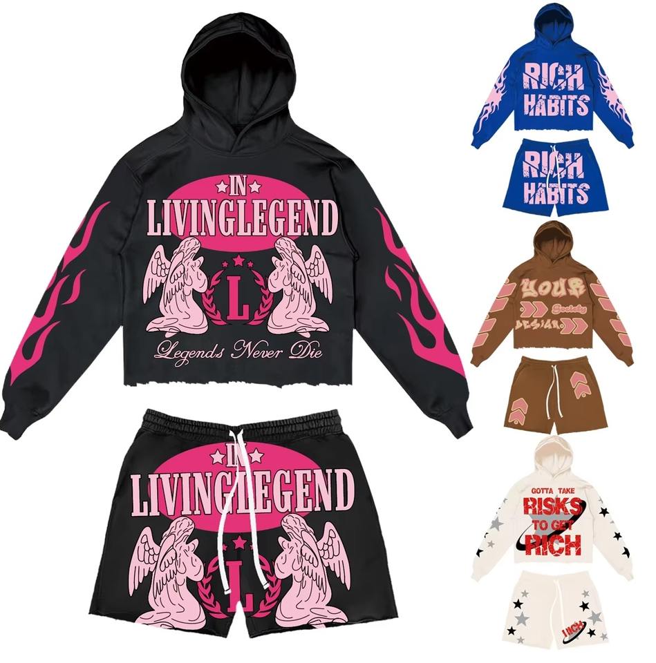 Ensemble de survêtement court unisexe avec logo personnalisé, vente en gros, comprenant un sweat à capuche zippé et un pantalon de jogging, ensemble 2 pièces pour homme