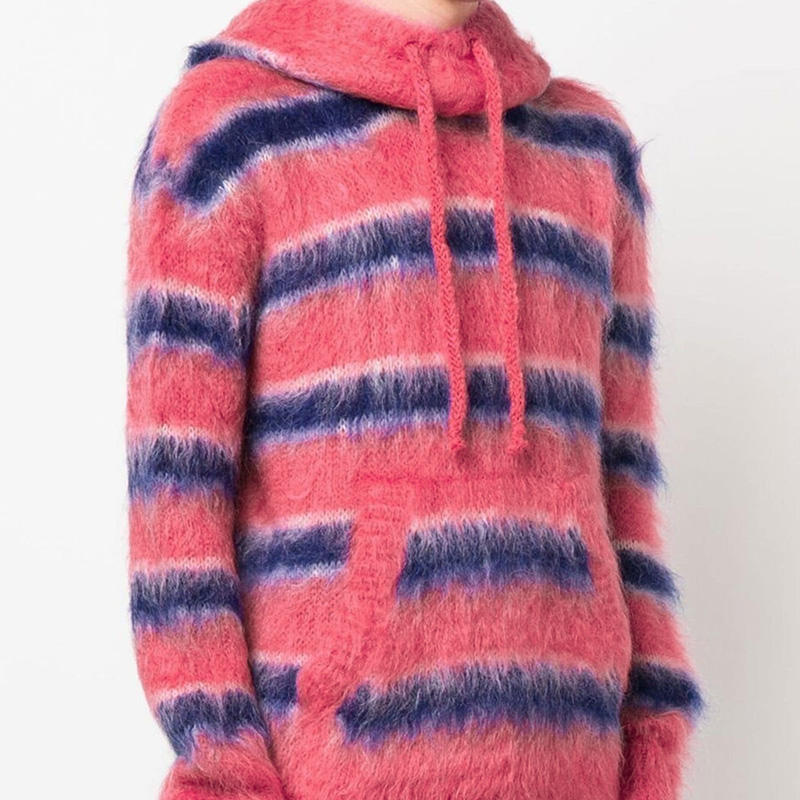 Logo personnalisé laine Mohair pull laine Mohair pull tricot rayé rose pull à capuche pour hommes