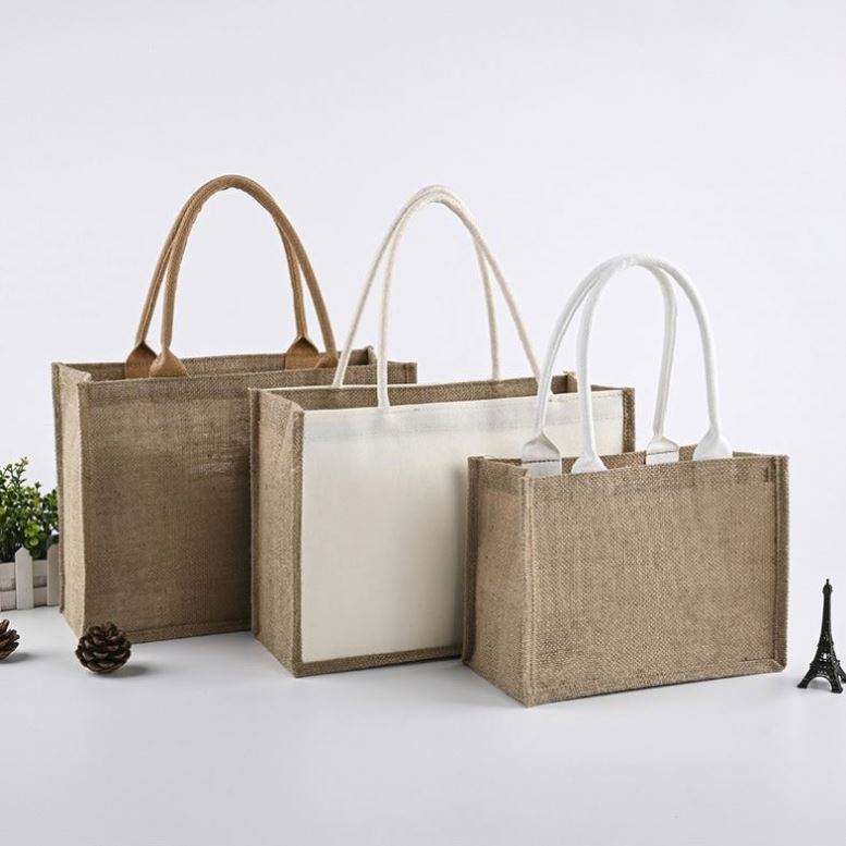Logo personnalisé bouton étanche stratification épicerie lin toile de jute sac fourre-tout en jute