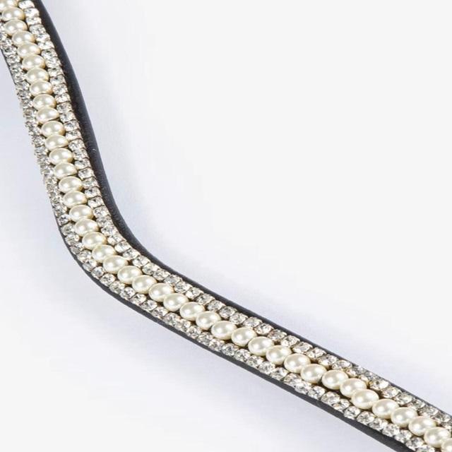 Bande de front de cheval en cuir véritable rembourré souple et confortable fait à la main avec logo personnalisé avec cristaux clairs design et perle blanche bling