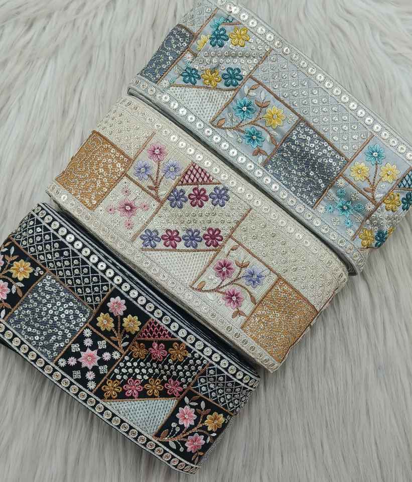 Dentelle brodée de paillettes de 1.25 pouces sur mesure avec une brillance élégante pour les garnitures de mode vêtements ethniques Qualité assurée pour la revente.