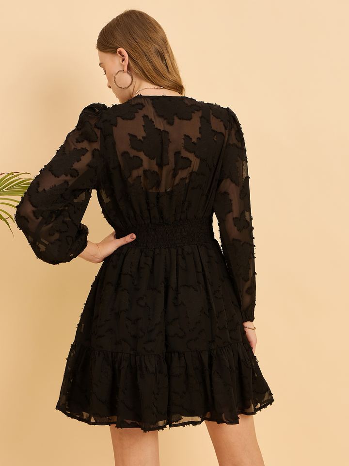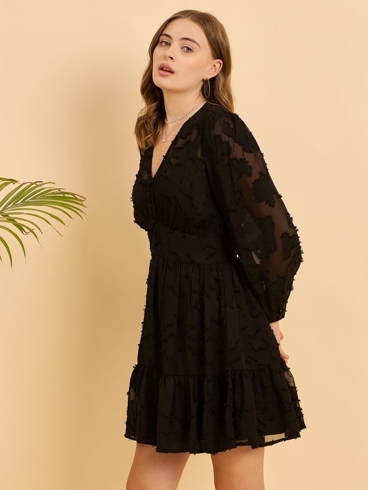 Robe courte en georgette transparente chic sur mesure avec boutons sur le devant et détails froncés convient aux clients et revendeurs de boutique