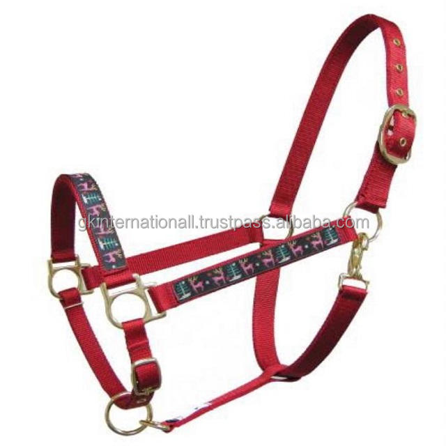 Licou de cheval en nylon réglable de conception brodée sur mesure pour des chevaux dans des couleurs vibrantes avec la boucle et les anneaux plaqués par laiton