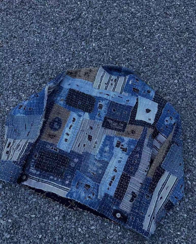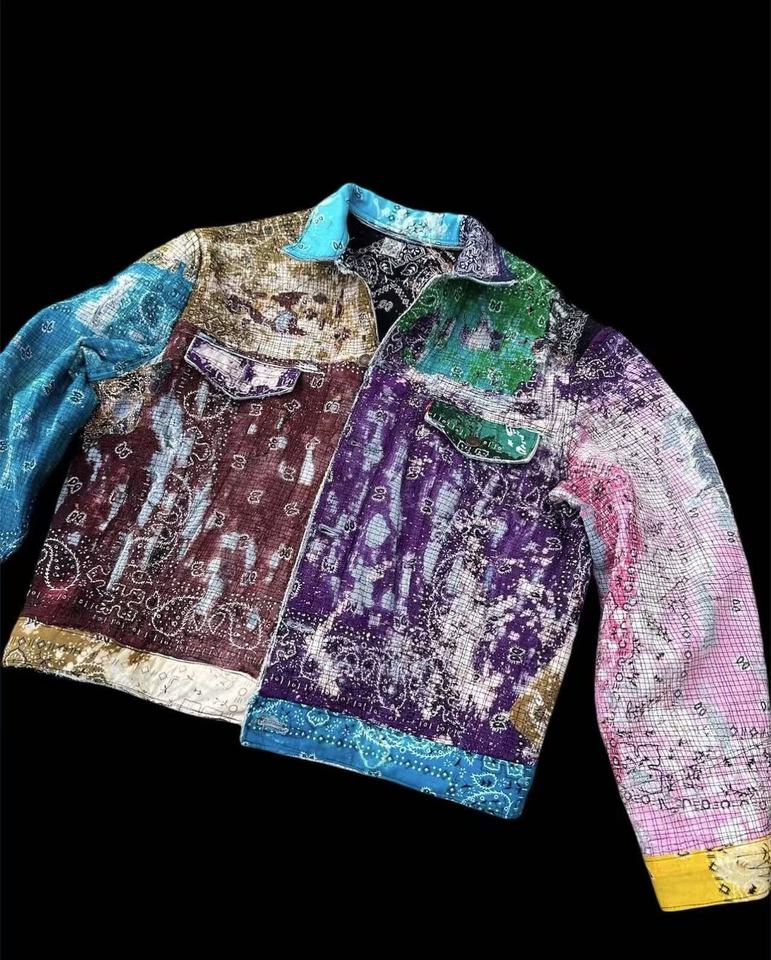Vestes amples et ajustées pour hommes, imprimées patchwork, sur mesure, vente en gros d'usine, vestes en jean de luxe pour l'hiver, design de créateur