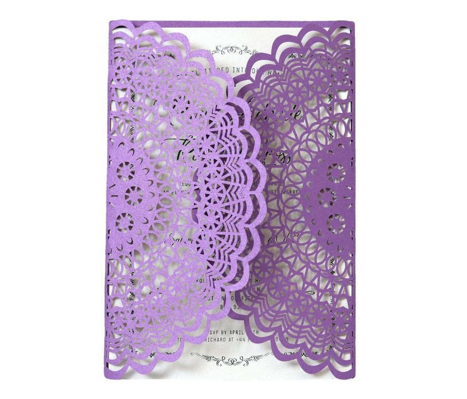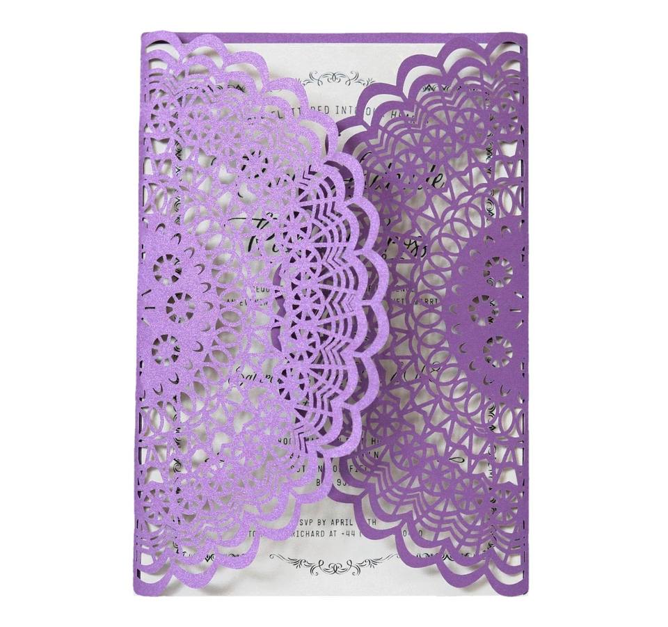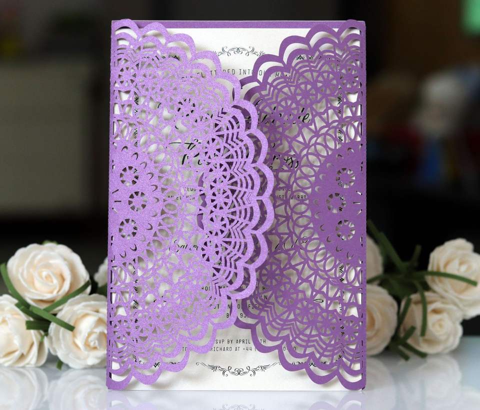Invitations de mariage personnalisées et économiques du fabricant, invitations découpées au laser de couleur violet foncé, cartes de vœux de mariage