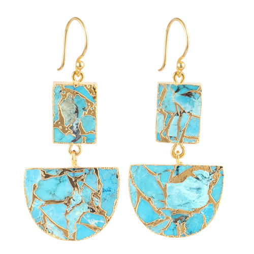 Boucles d'oreilles en laiton sur mesure Mojave bleu cuivre Turquoise Double pierre goutte balancent or/argent galvanoplastie pour les mariages cadeau