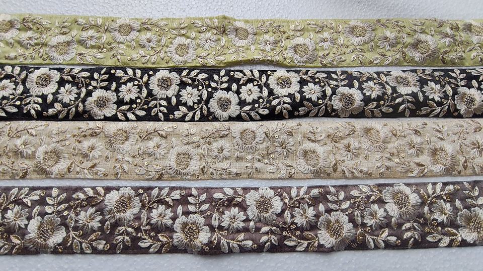 Lacets de soie brute brodés floraux sur mesure en quatre options de couleur avec paillettes pour robes de mariée à des fins de revente