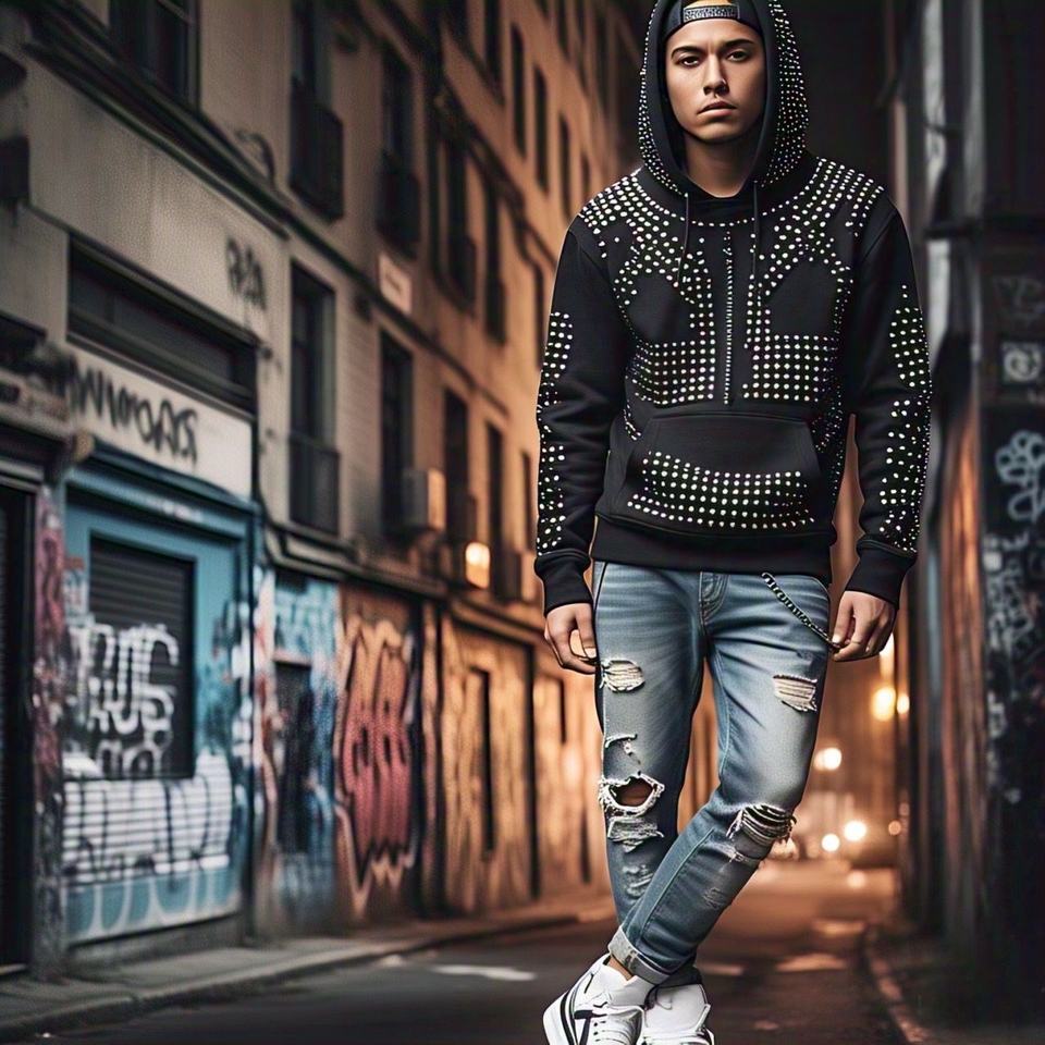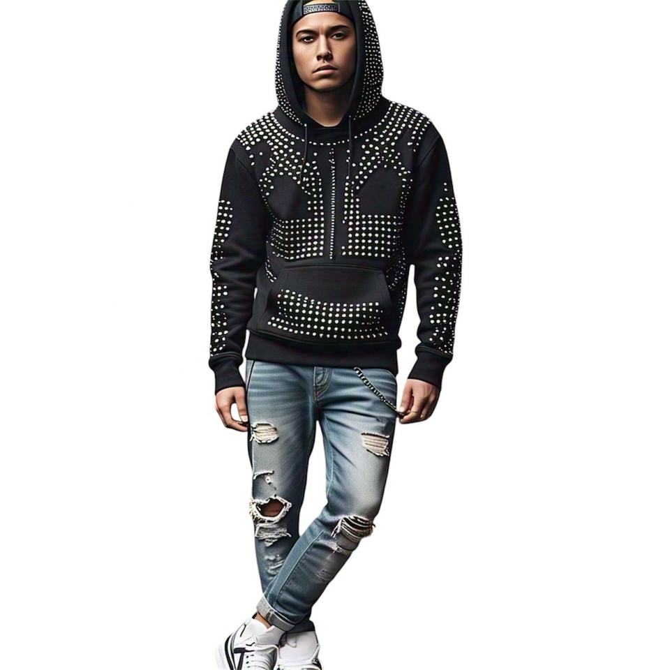 Custom men's hoodies Manufacturer Oversized Hoody Rhinestone Raw Hem Cut Edge 3d Puff Printing hoodies men