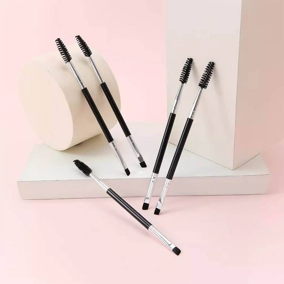 Brosse à sourcils et mascara double embout noire et dorée de précision, personnalisée ou standard, avec applicateur en forme de brosse à mascara, double face, écologique et réutilisable