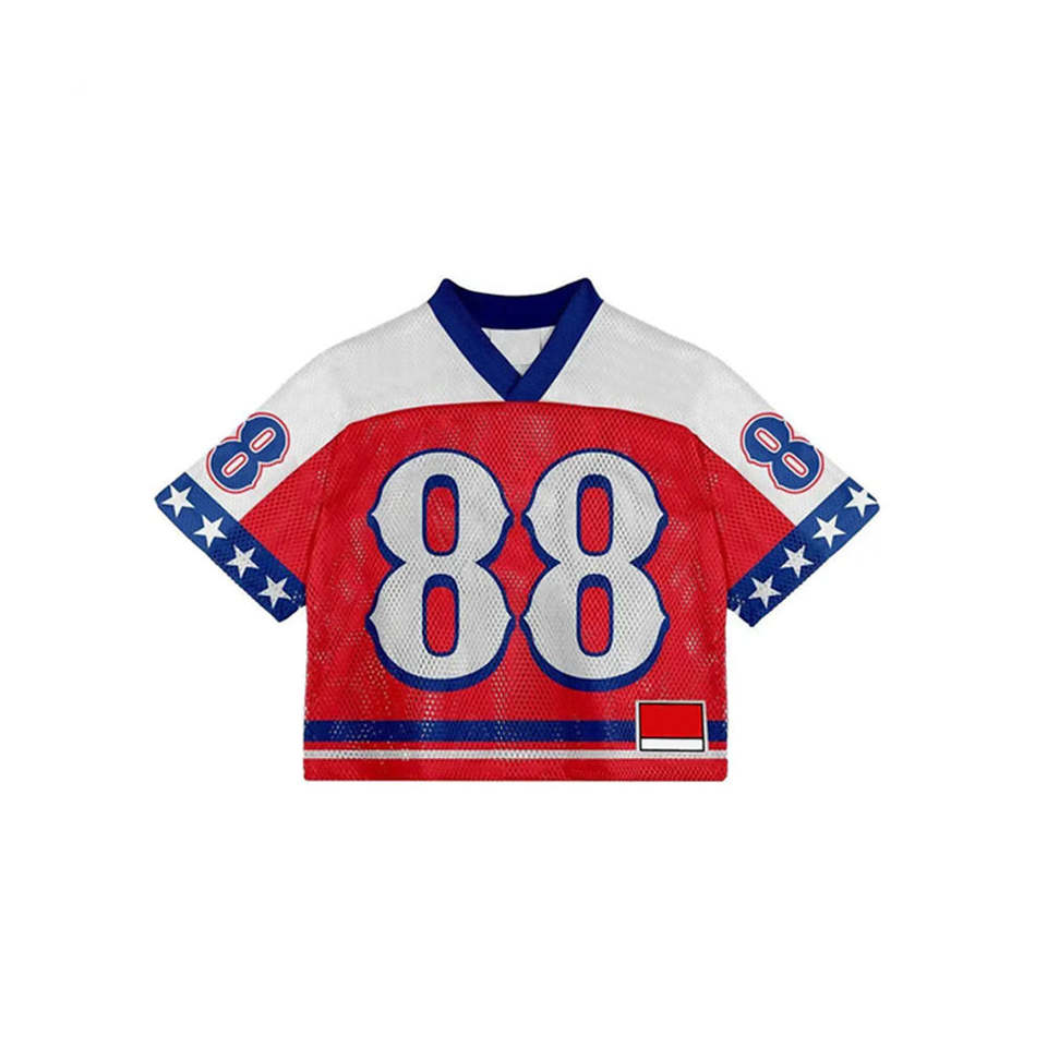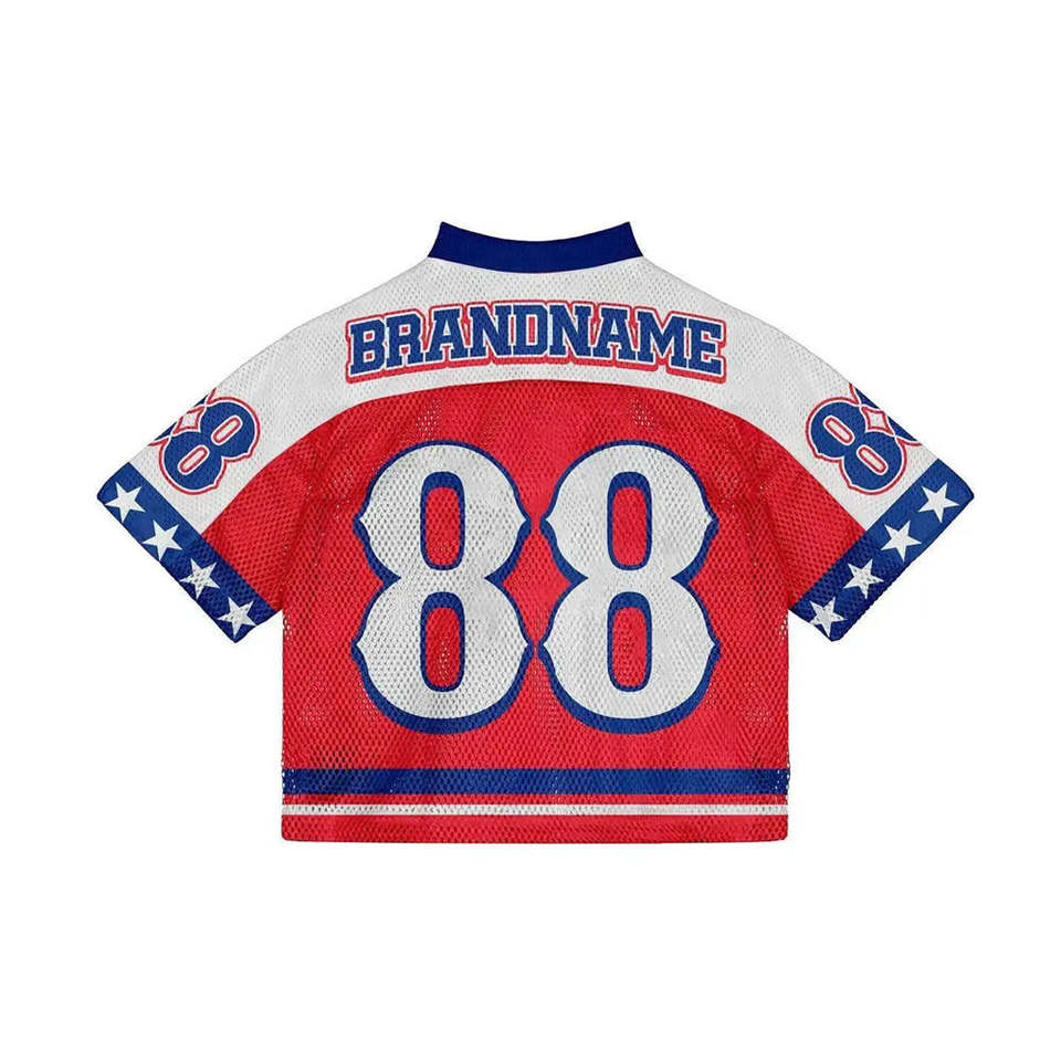 T-shirt de football américain rétro ample et personnalisé pour homme, style streetwear en maille, idéal pour l'été