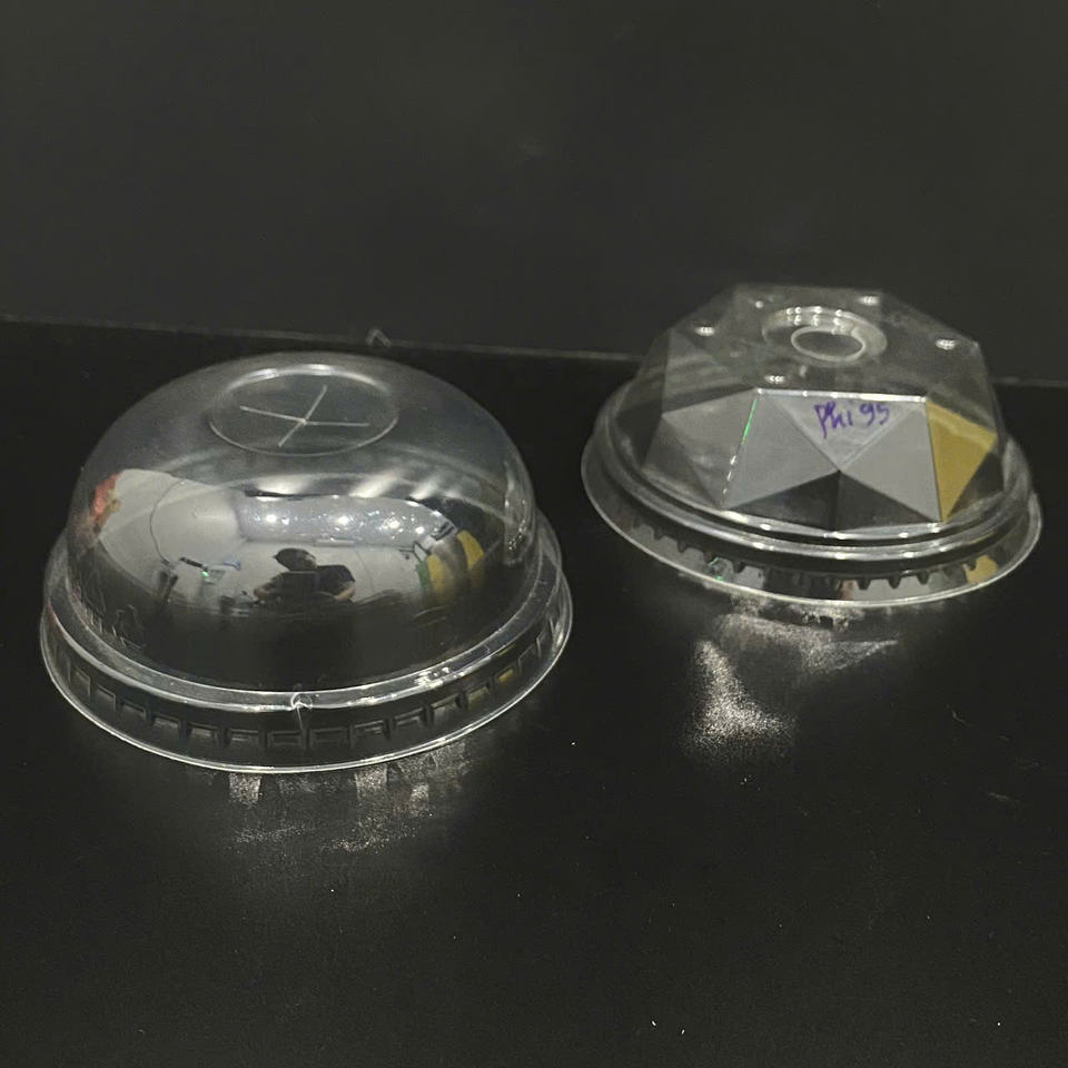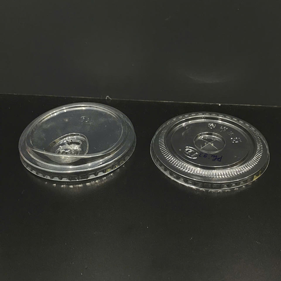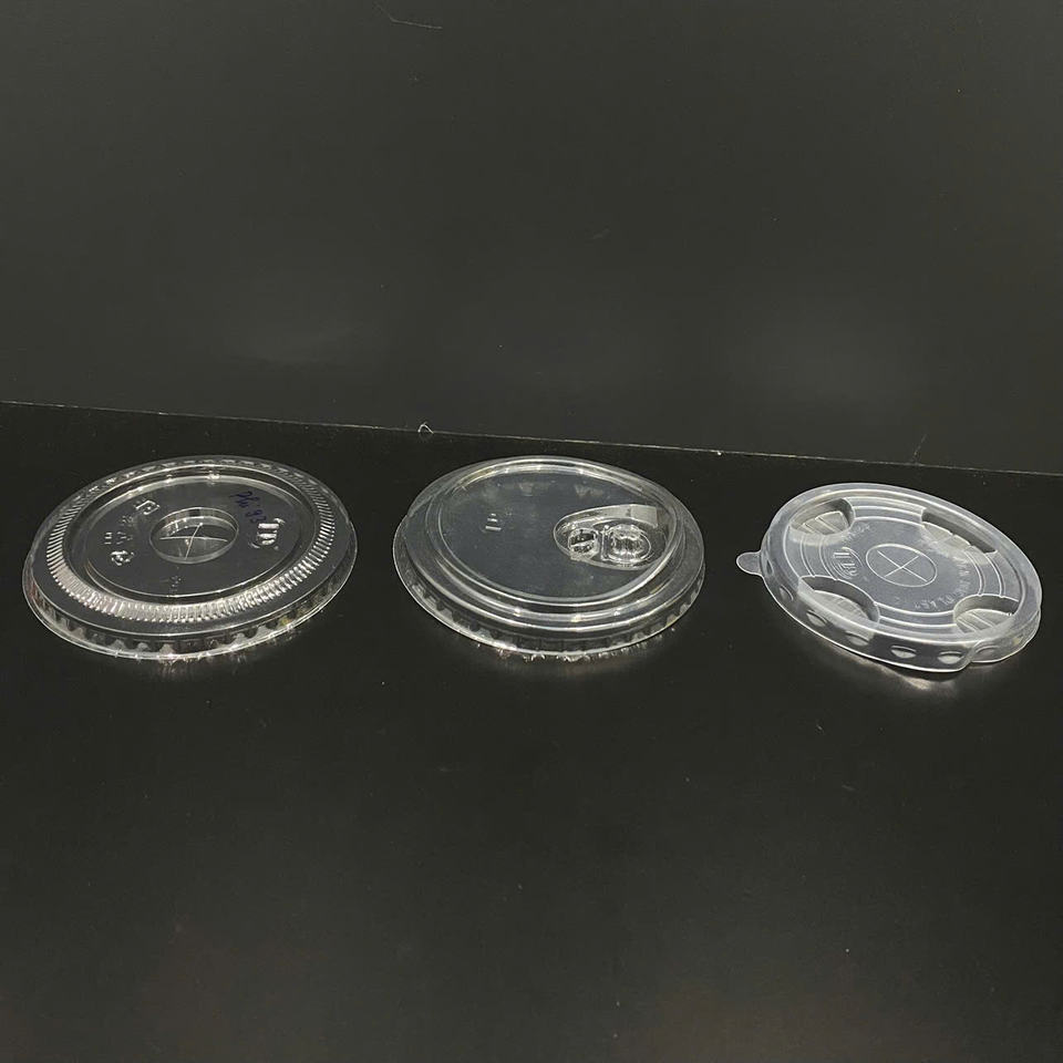 Couvre-gobelets en plastique PET/PP transparents, imprimés sur mesure, à bas prix, fabriqués en usine, diamètre 93/95/120 mm, couvercles plats ou en dôme pour gobelets en plastique.
