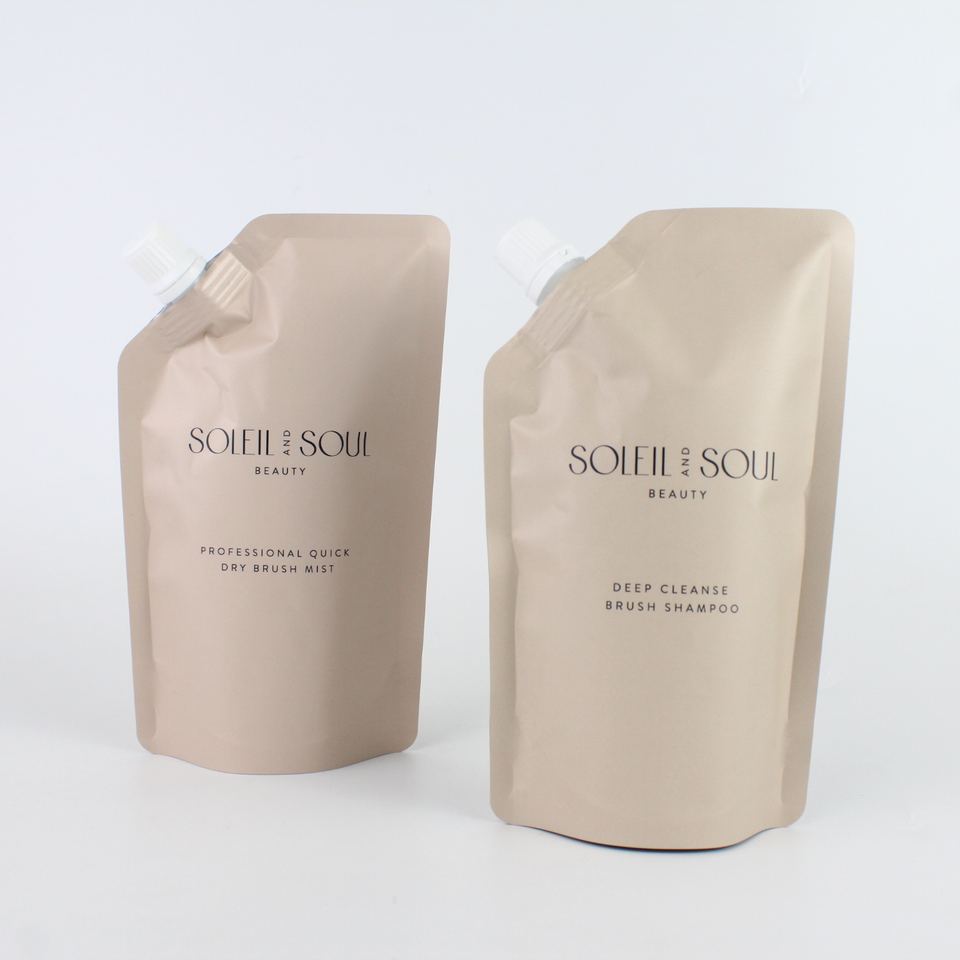 Packaging Details:Pochette cosmétique à bec verseur debout de 250ml/500ml réutilisable imprimée sur mesure emballage de shampoing étanche
