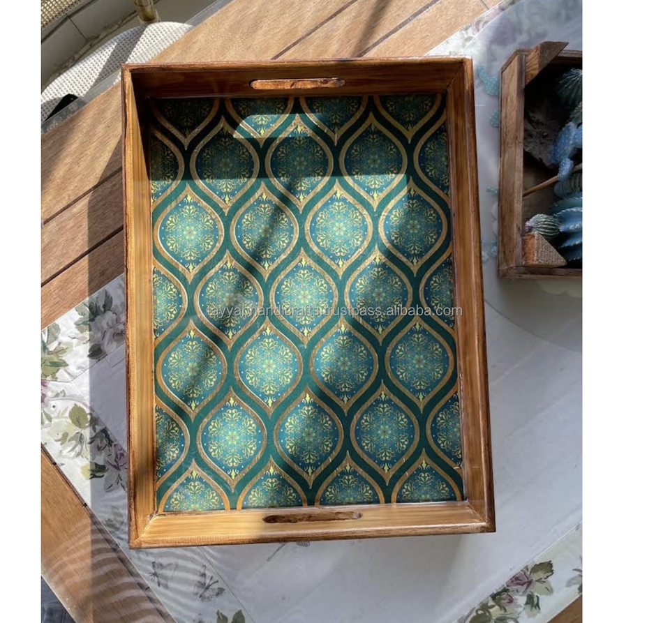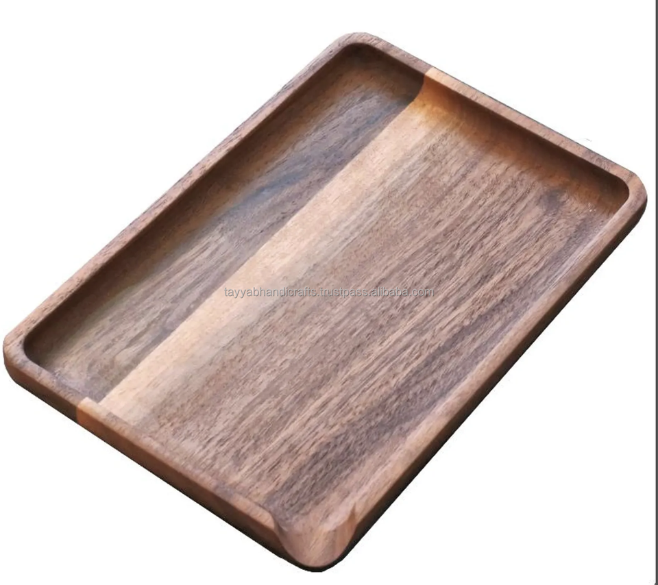 Plateau de service personnalisé, style nordique moderne, simple, couleur unie, rustique, plateau carré en bois d'acacia d'Inde