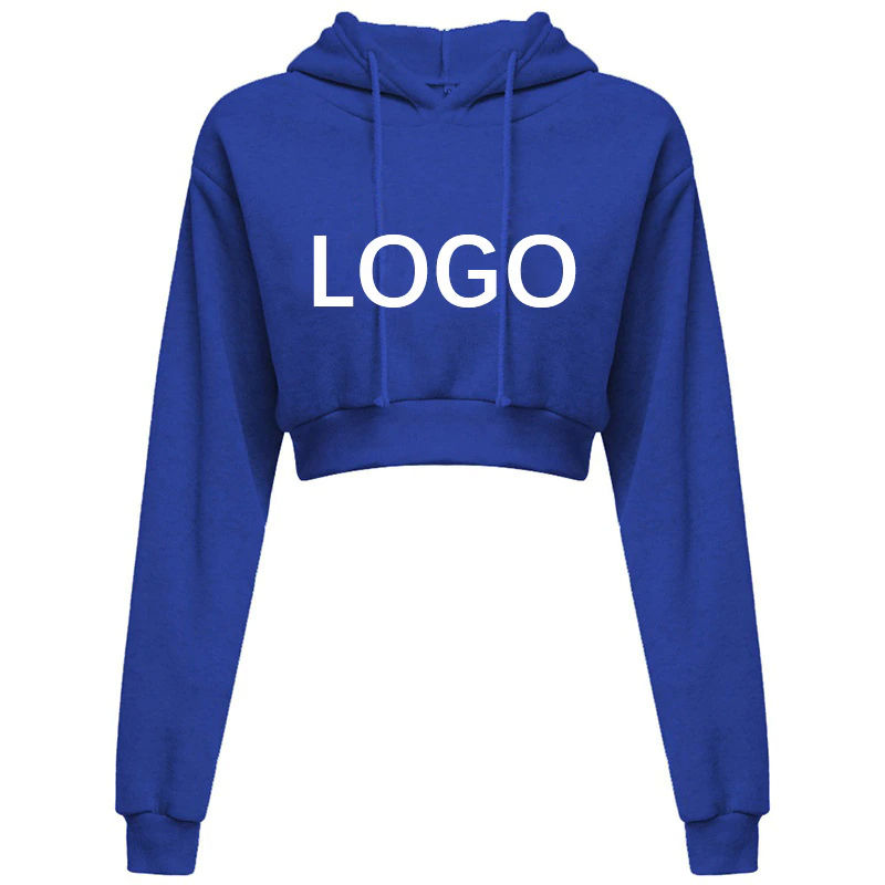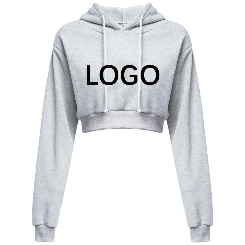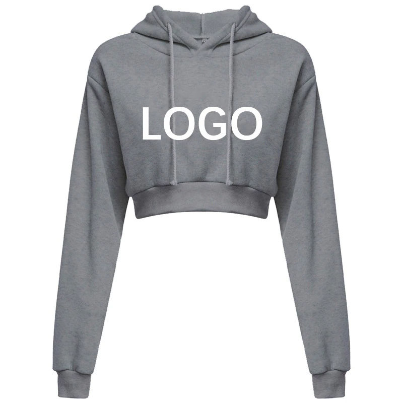 Personnalisé solide couleur manches longues crop top à capuche cultures courtes à capuche de femmes crop top pour les femmes et jeunes filles