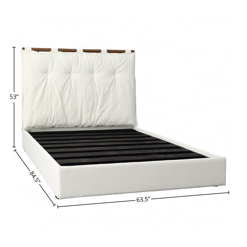 Lit en bois de teck massif personnalisé au design moderne et luxueux avec tissu doux et tête de lit en mousse pour meubles de chambre à coucher