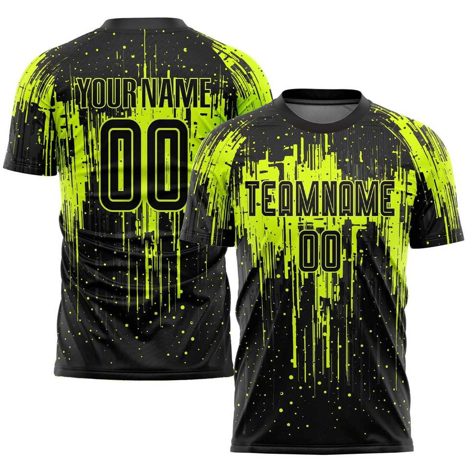 Custom Sublimation Sports Jersey Neon Yellow Black Graphic Print Short Sleeve Breathable Team Uniform Name Number 100% Polyester