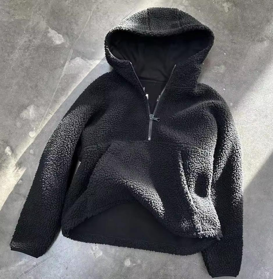 Sherpa épais personnalisé ninja à capuche coupe-vent demi-zip veste en laine d'agneau moelleux polaire hommes à capuche 2025 nouvelle mode qualité supérieure