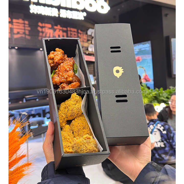 Boîte à poulet frit coréen jetable personnalisée avec tiroir coulissant et séparateur, conteneur rectangulaire en papier à ouverture facile pour la restauration rapide