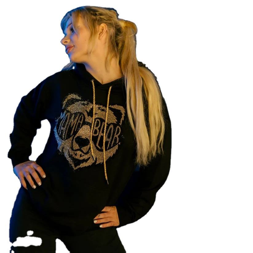 Custom Printed Embroidered Winter Hoodies Heavy Weight Rhinestone Drop Shoulder Oversize 100% Cotton for Men and Women
