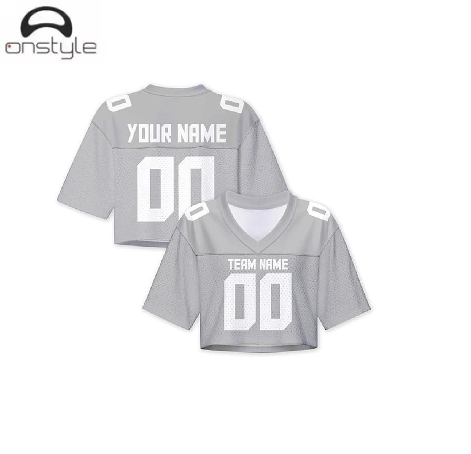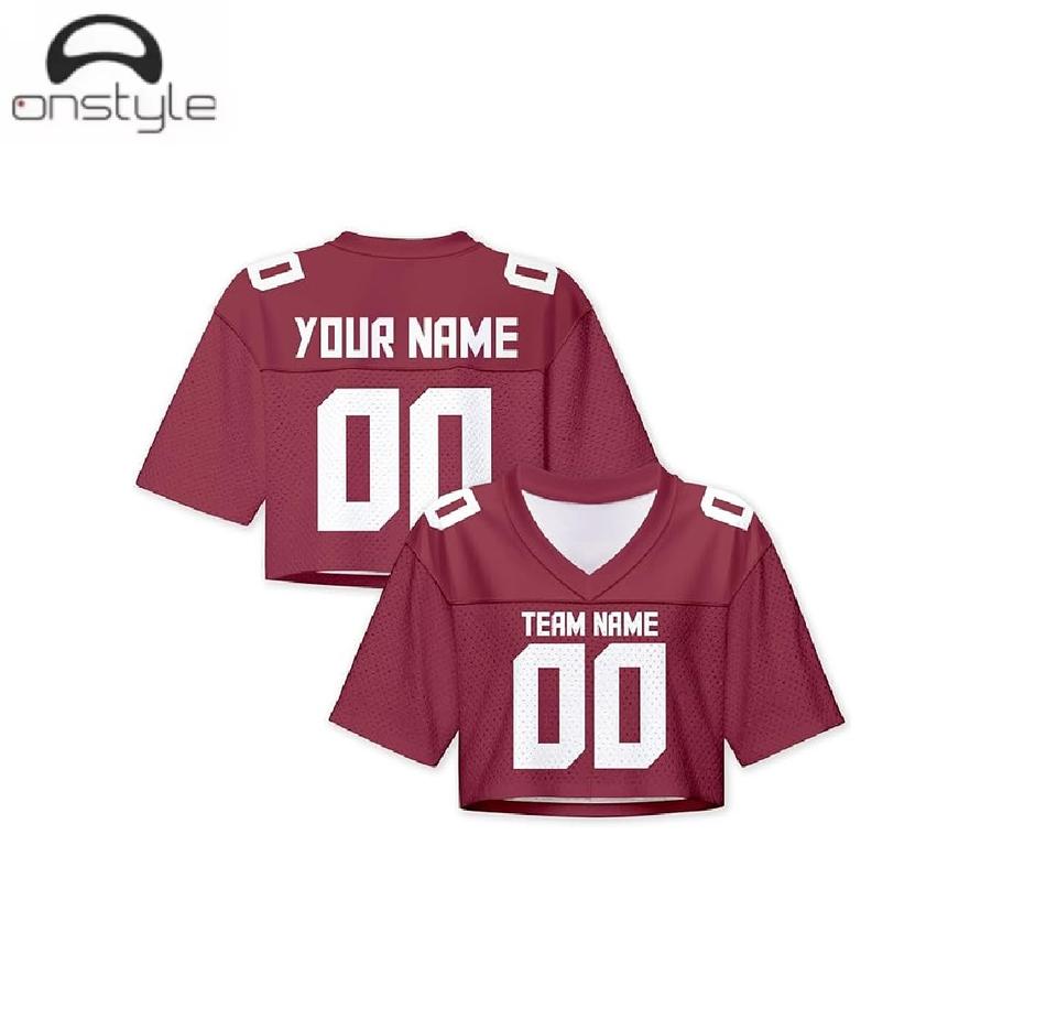 Custom women crop football jerseys sublimation print breathable lightweight dry crop sports jerseys for practice and tournaments