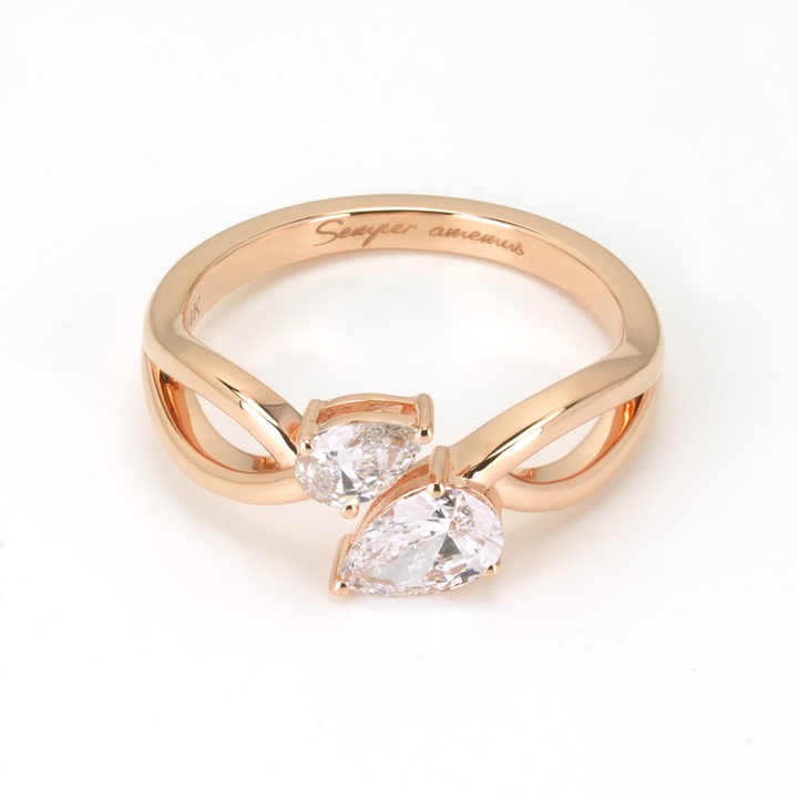 Bague personnalisée en or rose plaqué 10k 14k 18k avec deux diamants de laboratoire taille poire certifiés IGI, tendance, cadeau de Noël, Goldleaf