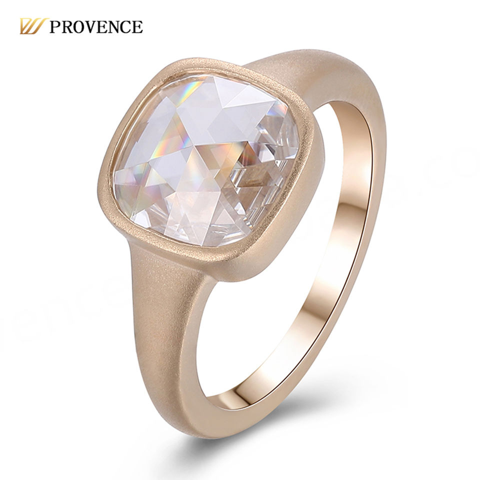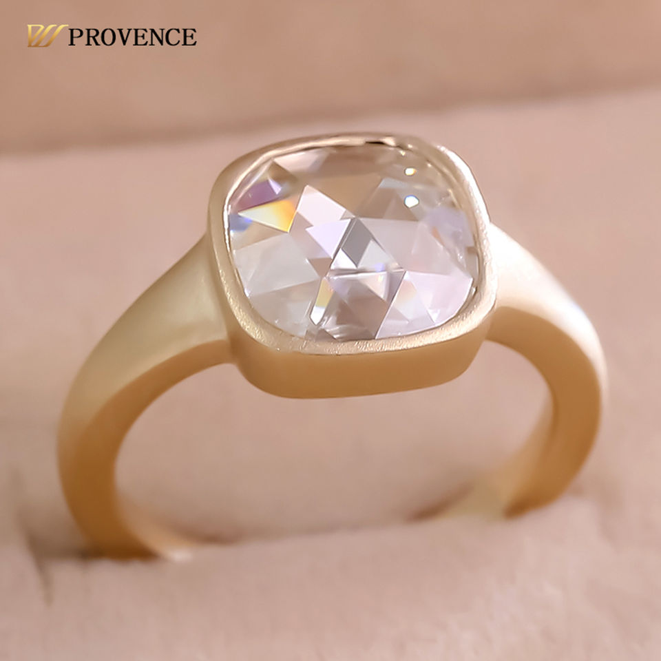 Custom18k10K Solid Gold Ring Solitaire Diamond Wedding Ring Bezel Setting Rose Cut Cushion Moissanite Ring Engagement Ring
