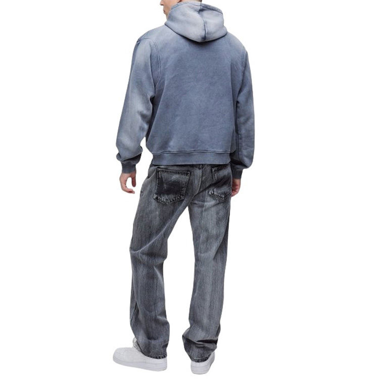Sweat à capuche surdimensionné de haute qualité CustomTerry avec col cheminée, détails de couture, grande poche kangourou, style vintage pour homme