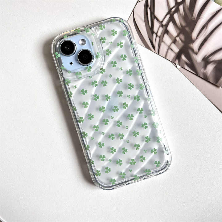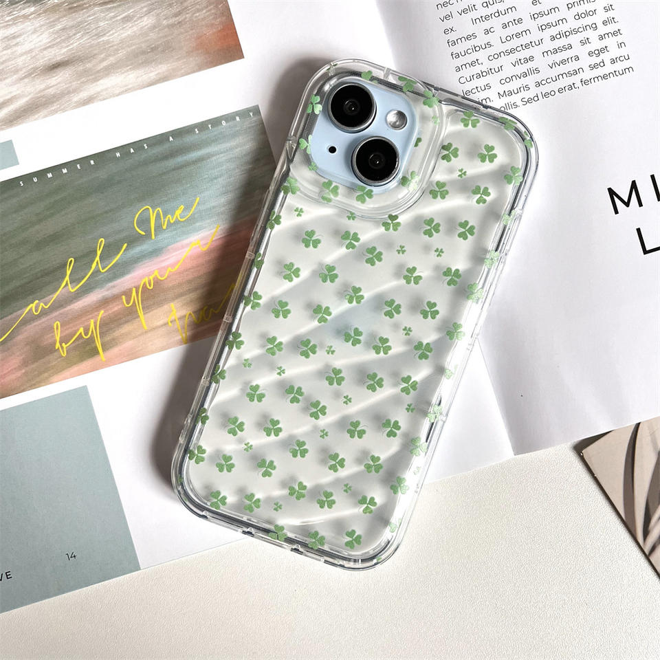 Client Vert Fleur Impression Ondulation De L'eau Transparent Souple TPU Housse de Téléphone Portable Pour Iphone 11 12 13 14 15 16 Pro Max