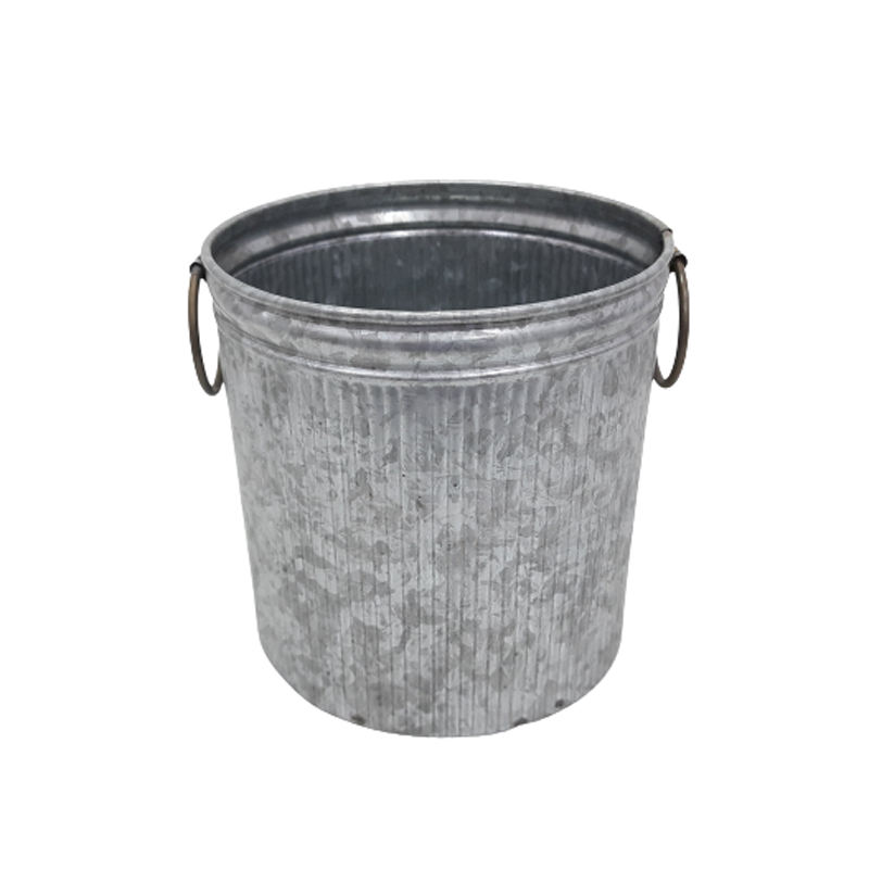 Customers Choice Jardinière ronde en métal avec poignée Pots moyens galvanisés utilisation Table de jardin intérieur extérieur Design fait main