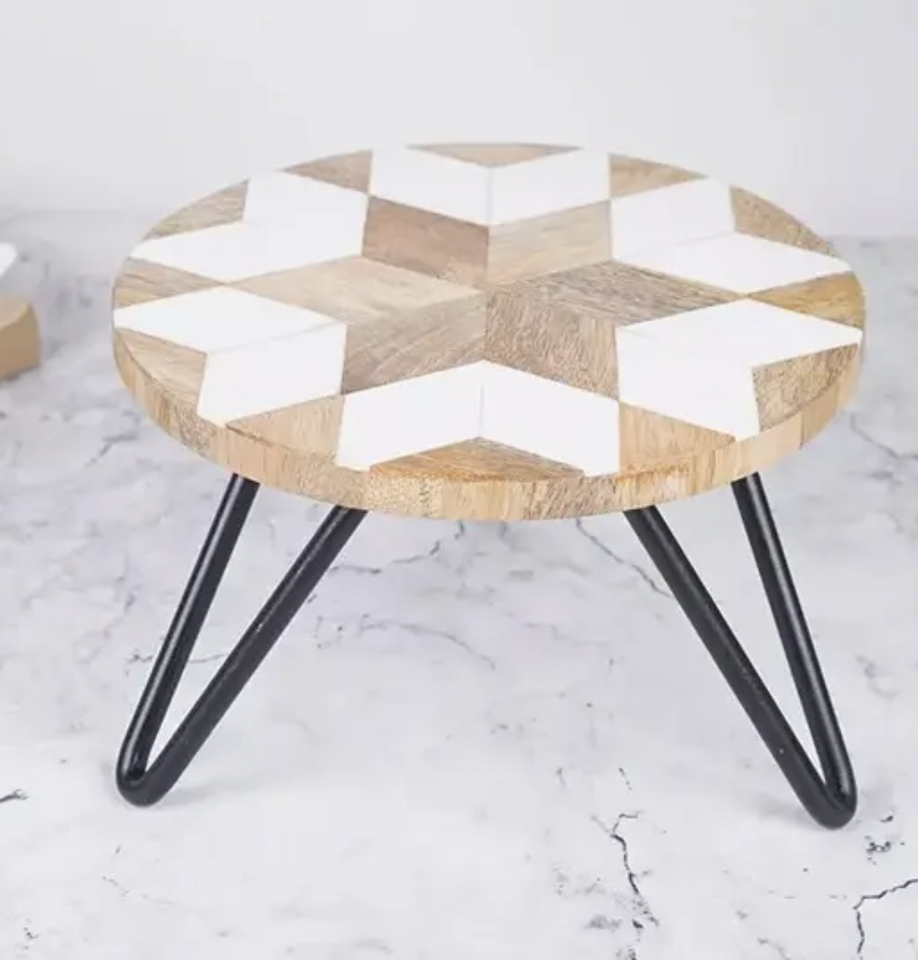 Customisation Wooden Round Cake Plate & Metal Base High Quality Cake Stand of Metal & Wood