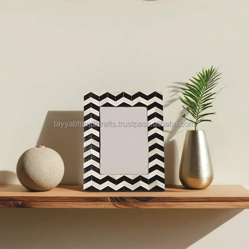 Cadre photo personnalisé en résine incrustée d'os et incrustation de bois avec une bonne combinaison de cadre photo en agate