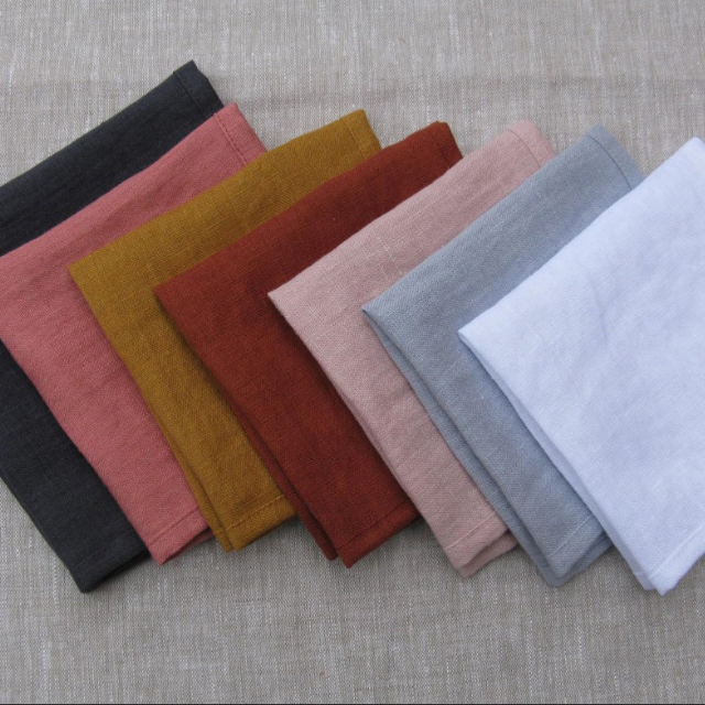 Ensemble de serviettes de table personnalisées 100% lin biologique vintage, rose blush, vert sauge émeraude, brodées à la main, pour mariage